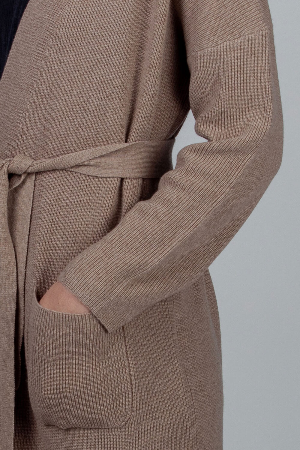 Loose fit. Fine knit cardigan made of 100% cashmere. Ribbed placket. Long sleeve. Dropped shoulder. With free movement ribbed belt.
